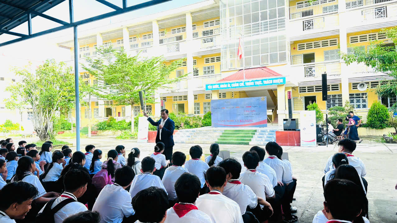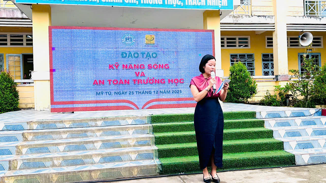 📅 Sáng ngày 26/12/2025, tại sân lễ Trường THCS Huỳnh Hữu Nghĩa, nhà trường đã tổ chức Chương trình Đào tạo kỹ năng sống và an toàn trường học với sự tham gia của đông đảo học sinh và giáo viên hai đơn vị trường học.