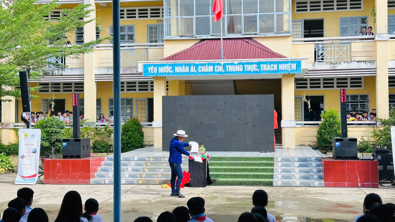 🎶 Bên cạnh các nội dung giáo dục bổ ích, chương trình còn được lồng ghép các tiết mục văn nghệ sôi động và màn biểu diễn ảo thuật hấp dẫn, vui nhộn, tạo không khí hào hứng, gần gũi, giúp học sinh tiếp thu kiến thức một cách nhẹ nhàng và hiệu quả.